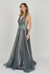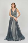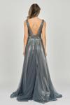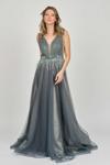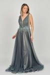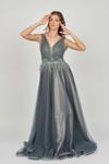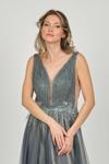 Detay: Üst kısmı dantel, alt kısmı şifon, astarlı abiye elbise;