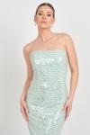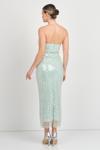 Kadın File Desenli Full Taş İşlemeli Bilek Boy Abiye Elbise 5275 Mint