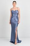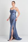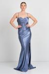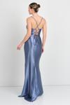 Detay: İp askılı ve drapeli yapısıyla feminen bir siluet sunan, beli korsajlı balık form abiye elbise, buzzi kumaşın zarif dokusuyla vücuda oturur ve şıklığı ön plana çıkarır. Derin yırtmaç detayı cesur bir duruş katarken, sırtı çapraz bağlamalı tasarımıyla etkileyici bir arka görünüm sunar. Astarsız ve fermuarlı yapısıyla hafiflik ve pratiklik sağlayan bu model, özel davetlerde, mezuniyetlerde ya da nişan törenlerinde stil sahibi bir görünüm arayanlar için ideal bir tercihtir;