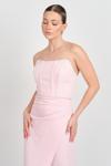 Detay: Bel ve göğsü şerit taşlı, straplez, yırtmaçlı, drapeli, fermuarlı, korsajlı uzun abiye elbiseler, zarafeti ve ihtişamı bir araya getirerek özel davetlerde göz kamaştırıcı bir görünüm sunar. Straplez kesimi feminen bir duruş sergilerken, korsaj detayı vücut hatlarını kusursuz bir şekilde şekillendirir. Bel ve göğüs kısmındaki şerit taş detayları ışıltılı ve sofistike bir hava katarken, drapeli tasarım elbiseye hareketli ve akıcı bir siluet kazandırır. Derin yırtmaç cesur ve etkileyici bir dokunuş eklerken, fermuarlı yapısı pratik kullanım sağlar. Uzun kesimiyle asil ve şık bir duruş sergileyen bu elbise, hem klasik hem de modern bir tarzı yansıtarak özel günlerde unutulmaz bir stil oluşturur;