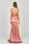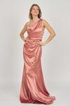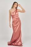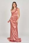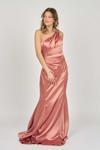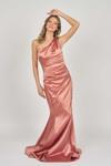 Detay: Tek omuz, saten, astarlı abiye elbise;