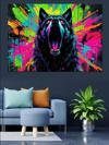 Renk Patlaması Kurt Dekoratif Kanvas - Mdf Ahşap Tablo