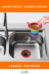 - Kademeli tasarımı sayesinde büyük ve küçük atıkların lavabo deliğine girmesini engeller.