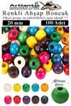 Artlantis Renkli Ahşap Boncuk 20mm 100 lü 1 Paket Renkli Ahşap Boyalı Yuvarlak Doğal Boncuklar Saç Takı Tasarım Ektinlik Kreş Okul