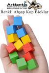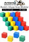 Artlantis Renkli Ahşap Küp Bloklar 2.5x2.5 cm 96 Adet Ahşap Renkli Kare Blok Eğitici Geliştirici Oyuncak Küp Matematik Birim Küp