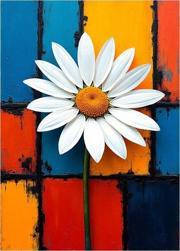 Renkli Arka Plan Ve Papatya Model Ahşap Tablo