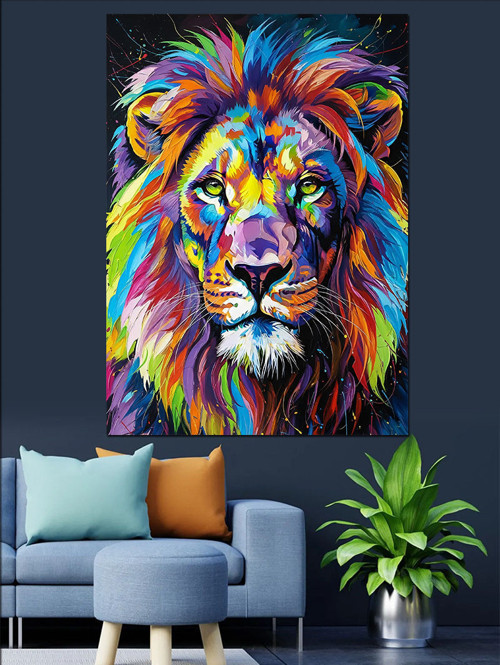 Renkli Aslan Başı Boyama Dekoratif Kanvas - Mdf Ahşap Tablo