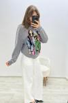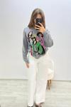 Mihrim Butik'in özel tasarımı Renkli Baskılı İçi Yumoş Kazak, şıklığı ve rahatlığı bir arada sunuyor.