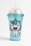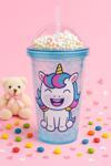 Kesene Renkli Boncuklu Unicorn Tasarımlı Pipetli İçecek Bardağı Çocuklar İçin Sevimli Suluk Mavi 2646