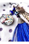 Renkli Cam Hayat Ağacı Mavi Püsküllü Anahtarlık – Anlamlı ve Estetik Tasarım