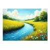 Renkli Çayır Ve Nehir Manzarası Modern Ahşap Tablo 25cmX 35cm