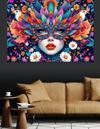 Renkli Çiçekli Kadın Dekoratif Kanvas - Mdf Ahşap Tablo