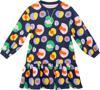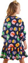 Uzun kollu, bisiklet yaka elbise. Kışlık kumaştan üretilmiştir. Üzeri komple, metraj çiçek baskılıdır. Etek uçları fırfırlıdır. Tüm MSHB&G ürünleri çocuk güvenliği düşünülerek üretilmiştir ve iğne dedektörlerinden geçirilmiştir.