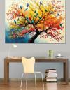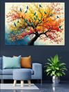 Renkli Dallı Ağaç Manzarası Dekoratif Kanvas - Mdf Ahşap Tablo