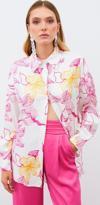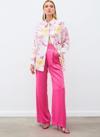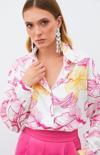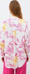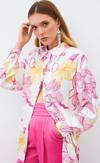 Gizli pat, yanlar mini yırtmaçlı, uzun manşetli kol, renkli desenli salaş gömlek.