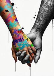 Renkli Eller Ve Dövmeler Hediyelik Ahşap Tablo