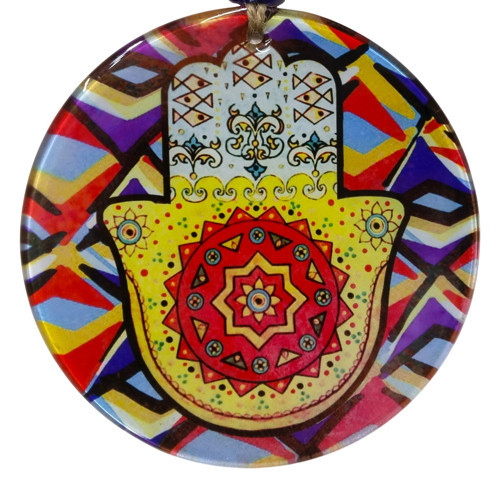 Evinize Şans ve Renk Katın: 16 cm Dekoratif Cam Hamsa (Fatma Ana Eli) Duvar Süsü