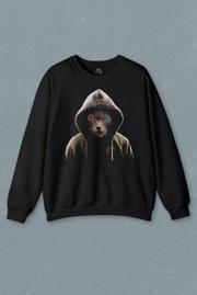 So Cool Renkli Gözlü Hacker Korsan Kedi Cat Baskılı Sweatshirt