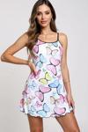 Renkli Kelebek Desenli Askılı Kadın Gecelik