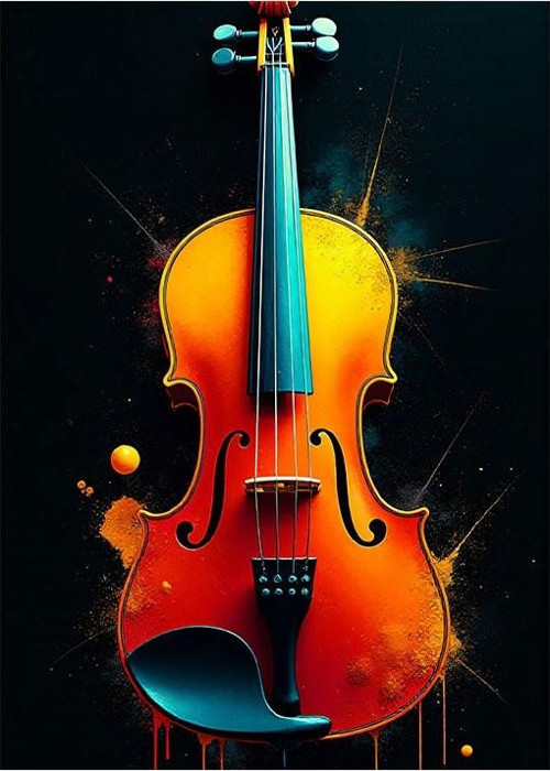 Karizmart Renkli Keman Çizimi Tasarım Mdf Tablo