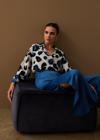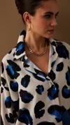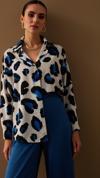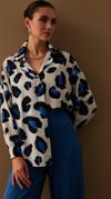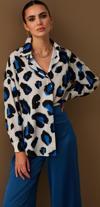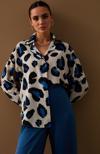 Ön gizli pat, yarasa ve uzun kol, geniş kalıp, renkli leopar desenli salaş gömlek.