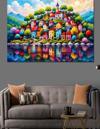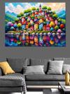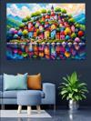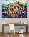 Renkli Masalsı Evler Tepesi Dekoratif Kanvas - Mdf Ahşap Tablo