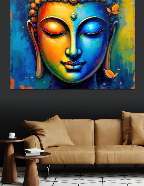 Renkli Meditasyon Buda Portresi Dekoratif Kanvas - Mdf Ahşap Tablo