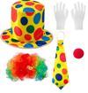 ✔ 5 Parça Tam Set: Şapka, renkli kıvırcık peruk, büyük kravat, beyaz eldiven ve sünger burun içerir.