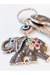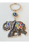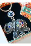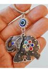Renkli Taş Süslemeli Fil Metal Anahtarlık – Uğur, Bereket ve Zarafetin Simgesi