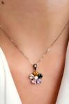 Renkli zirkon taşlı 925 ayar gümüş tasarım çiçek kolye