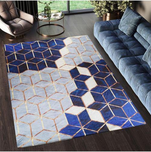 Renklibutik Kadife Dokulu, Lastikli, Süngerli, Kaymaz, Yıkanabilir Modern Desenlerde Halı Örtüsü- 4 M2