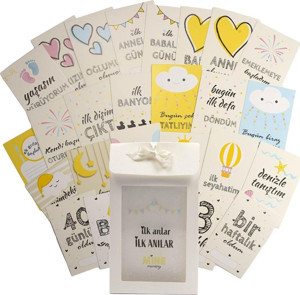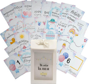 Tuğset Etiket Bebek Anı Kartları Aylık Fotoğraf Çekim Kartları 27 adet Özel Tasarım Saklama Kutulu Bebek Hediyelik-T1527