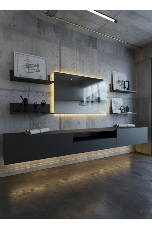 Yerden yüksek "yüzer" tasarımı sayesinde oturma odanızda ferah bir görünüm sağlarken, alt kısmındaki entegre LED ışık sistemi ile akşamlarınıza modern bir ambiyans katar.
