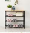 Metal siyah boyalı hasır tel raflı üst tablası atlantik çam ayakkabılık olarak üretilir. Çok amaçlı raf olarak çeşitli fonksiyonlarda da kullanılabilir.