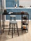 Retodesign Siyah Raflı Yuvarlak Tabureli Bar Takımı 4651S