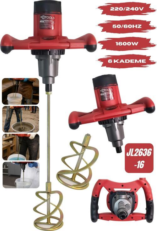 RETOOLS JL2636-16 modeli, güçlü motoru ve ergonomik tasarımıyla boya, harç, alçı, yapıştırıcı ve çeşitli inşaat kimyasallarının hızlı ve homojen bir şekilde karıştırılması için geliştirilmiştir.