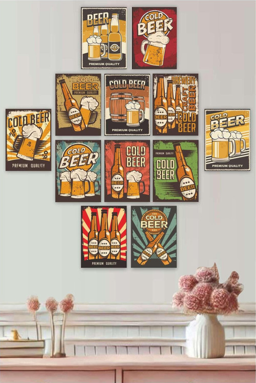 15 x 20 cm boyutlarındaki bu dekoratif MDF tablo seti, retro beer temalı 12 parçadan oluşur ve her biri kültürü ve diasporayı yansıtan benzersiz tasarımlara sahiptir.