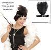 1920'ler Gatsby Kadın Aksesuar Seti &ndash Tüylü Saç Bandı, Uzun lık ve Beyaz Otriş