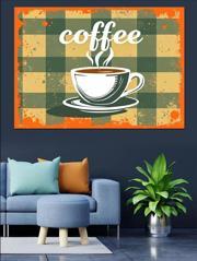 Retro Çizgili Kahve Posteri Dekoratif Kanvas - Mdf Ahşap Tablo