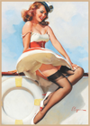 ⛵ Rüzgârla kabaran etekler, denizin ferahlığı ve eski zamanların zarafeti… Bu ahşap tablo, nostaljiyi deniz esintisiyle harmanlıyor. Denizci şapkası ve beyaz-kırmızı elbisesiyle poz veren bu karakter, duvarlarınızda göz alıcı bir retro atmosfer yaratacak.