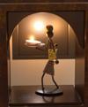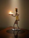 Etnik ve Retro Tasarım: Mumu elinde tutan figürlü Afrika sanatı esintili tel tasarım, dekorasyon stilleriyle mükemmel uyum sağlar. (SEO: Afrika Mumluk, Demir Şamdan, Etnik Dekor)