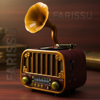 Dikkat: Ürünün üzerindeki minyatür plak ve iğne, tasarımın bir parçasıdır ve gerçek bir plak çalma işlevi yoktur. Fonksiyon, iğnenin plaka üzerine getirilmesiyle tetiklenir ve bu, cihazın bir işlevi (örneğin Bluetooth, müzik veya radyo modu) başlattığı bir anahtar görevi görür.