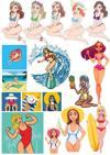 Retro Kadın Sticker Set 2 15 Parça Telefon, Tablet, Defter, Laptop Sticker