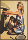 🚗 Anahtarı tutan eller bu kez stile imza atıyor! Renkli çizgili elbisesi, platin sarısı saçları ve asi bakışıyla hem zarif hem de güçlü bir kadın figürünü taşıyan bu retro tablo, mekanik işlerin bile şıklıkla yapılabileceğini hatırlatıyor.