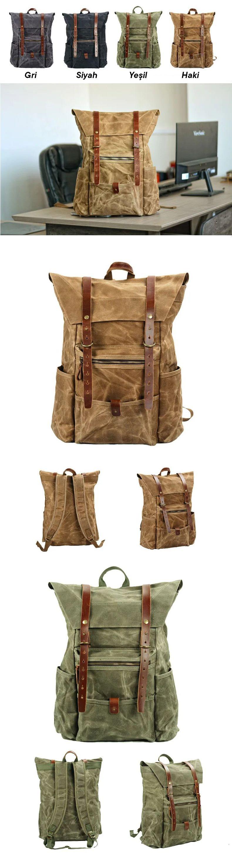 Birinci sınıf mumlu kanvastan üretilen bu sırt çantası, zamana ve doğa şartlarına dayanıklı olarak üretildi