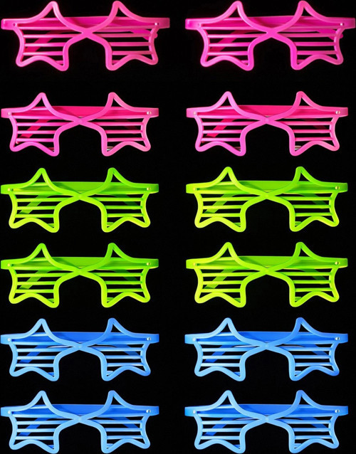 4 adet Neon Pembe Yıldız Panjur Gözlük ( Fosforlu )