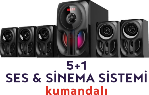 Rever 5+1 Hoparlör Kumandalı Ses & Sinema Sistemi Bluetooth / USB / SD / Destekli RGB Işıklı