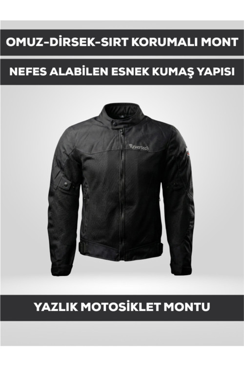 Revertech Siyah Yazlık Fileli Motosiklet Montu Ce Korumalı Nefes Alan Hafif Mont