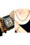 Reward Deri Kordon Fonksiyonları Aktif Kare Kadran Saat+Bileklik +Çelik Set Sevgiliye Hediye Set