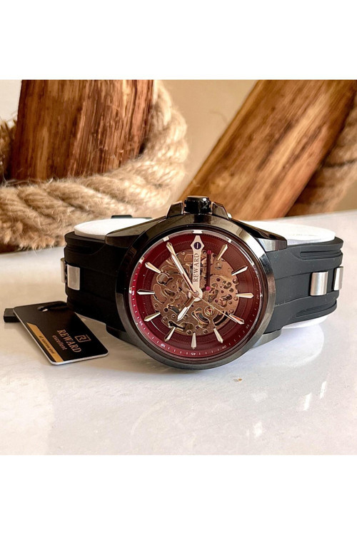 Reward Excellent Silikon Kordon Siyah Pilsiz Otomatik Erkek Kol Saati+Bileklik